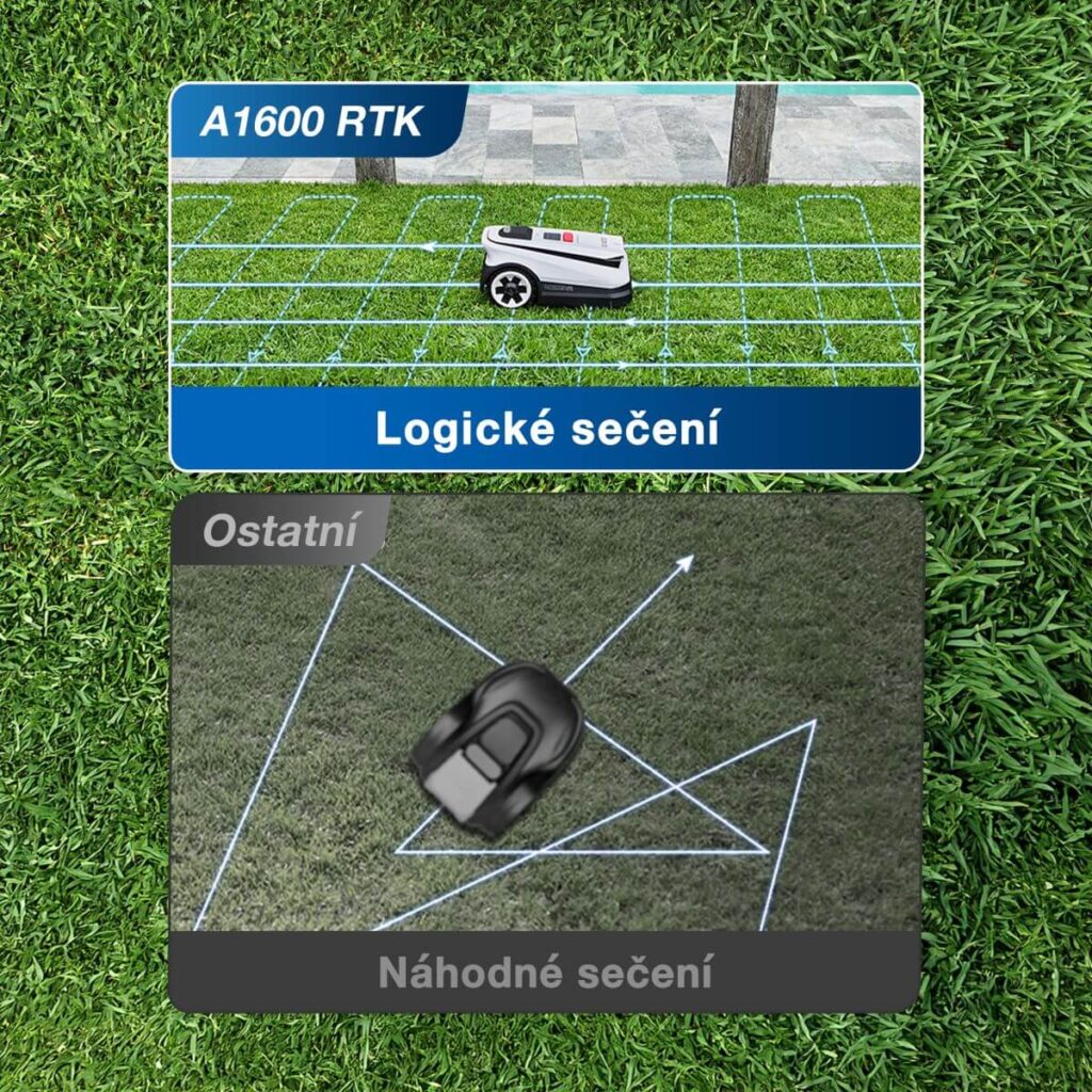 Robotická sekačka ECOVACS GOAT A1600 RTK s podporou AI Deep Learning dokáže v reálném čase rozlišit travnatou plochu od netravnaté. Na hranici sečení zároveň rozezná, zda se jedná o ohraničení, po kterém může jezdit. Při sjízdném ohraničení, jako je například dlažba, bude robotická sekačka jednou stranou přejíždět přímo po ní, a tak na okrajích nezanechá ani jedno stéblo neposečené trávy.