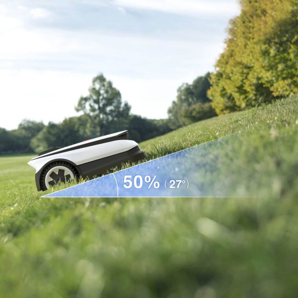 Robotická sekačka ECOVACS GOAT A1600 RTK snadno a stabilně zdolává svahy se sklonem až do 50 % (27°). Obratnou manévrovatelnost a zdolávání svahů umožňují zadní terénní kola o průměru 22 cm a přední univerzální kola. Zároveň zajistí průjezd i přes chodníky do výšky 3 cm.